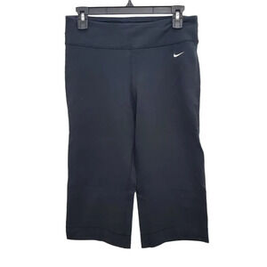 Nike NikeFit Dry Women's Black Swoosh Loose Fit Cropped Athletic Leggings Sz M