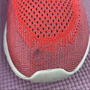 Bright orange pink color, Mesh toe, Lace up, Mesh tongue, Rubbery suede like heel area