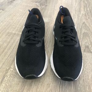 Womens Nike Odyssey React Flyknit 2 Black & White Running Shoes Sneakers. Size 7.5 US, 5 UK, 38.5 EU. Style Code AH1016-010. No rips, tears or major stains. Missing size and label tags. No insoles. See photos for condition.