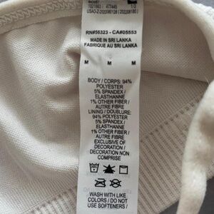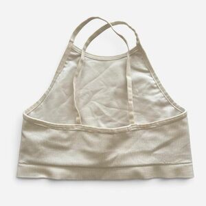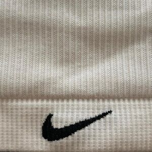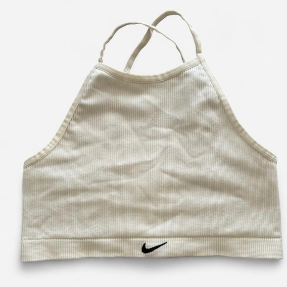Off-white ribbed top featuring Nike logo. Perfect for casual wear.