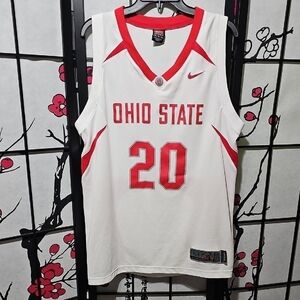 Show your team spirit with this Ohio State basketball jersey. Features bold red accents and the number 20. Perfect for fans and collectors.