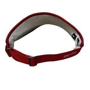 Show your team spirit with the Oklahoma Sooners Visor Hat, perfect for sunny days at the game or casual outings. This red visor features Dri-FIT technology to wick away moisture, keeping you cool and comfortable. The adjustable strap ensures a perfect fit for all, while the embroidered logo proudly displays your allegiance. Whether you're cheering from the stands or enjoying a summer barbecue, this visor is your go-to accessory. Please note, this item is pre-owned but in great condition.
