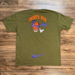 Nike tee in olive with playful graphics. Perfect for casual wear.