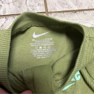 Olive green Nike jacket with ribbed texture. Features front zip and logo on chest. Cozy and cute, your little newborn baby will look athletic in this Nike ribbed coverall. Like new 💚