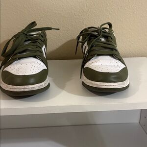 Sleek Nike low-tops in olive and white. Ideal for everyday style.