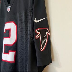 Nike On Field NFL Atlanta Falcons Matt Ryan Jersey. Show your team spirit with this official NFL Atlanta Falcons jersey. Crafted in a sleek black color, it features the iconic number '2' with white numerals outlined in red. Made from high-quality athletic mesh, this jersey ensures comfort and durability for every fan. Features stitched on patches. High quality jersey.