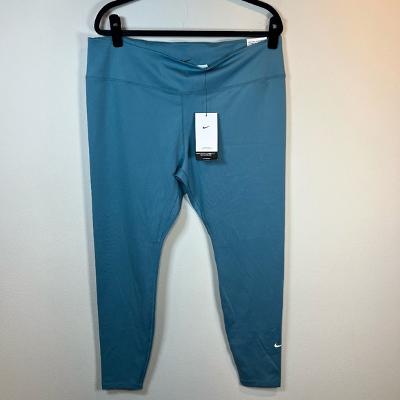 Nike One Dri-Fit Mid Rise Full Length Leggings Smokey Blue Teal Athletic NEW XXL