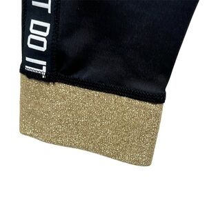 Color: Black, with glittering gold cuffs and accents, and white lettering