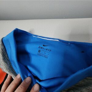 Elevate your workout wardrobe with these Nike One Mid-Rise Dri-Fit Tight Fit Leggings in size XS. The colorful colorblock pattern in black, blue, red, and grey is perfect for activewear occasions. The blended fabric with compression area on the leg offers a comfortable and snug fit.
