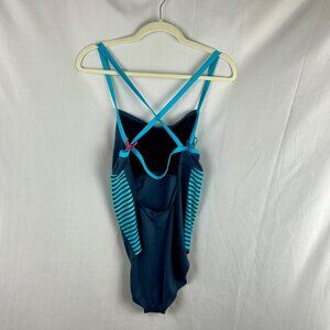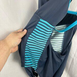 Nike One Piece Swim Suit Women XL Gray Blue Turquoise Beach Vacation Active