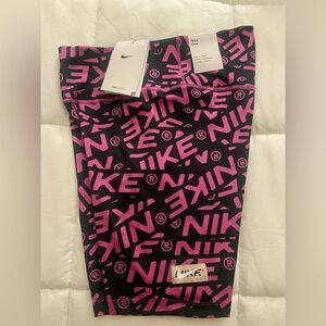 Brand new with tags. Elevate your activewear game with these Nike One Women's 7" Cosmic Fuchsia Printed Mid-Rise Biker Shorts. The compression shorts feature an elastic waistband, pull-on closure, and pockets for your essentials. The moisture-wicking technology keeps you cool and dry during your workouts, making them perfect for gym and training, cross-training, CrossFit, and hiking.