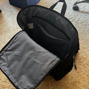 The spacious main area zips open at the top. A padded sleeve inside holds a laptop, and a mesh pocket makes it easy to see what you’re looking for.