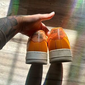 Vibrant orange Nike sneakers. Perfect for casual wear. Comfortable and stylish.