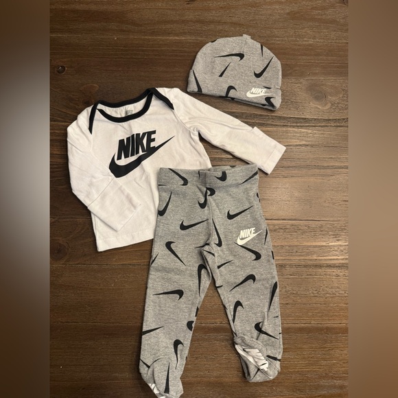 3 piece Nike outfit. Like new condition, only worn once. Features footed pants and cuffed sleeves.