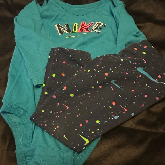 Blue onesie with white Nike logo. Soft and comfortable fabric. Matching leggings. Excellent condition. Bundle and save. Offers welcome.