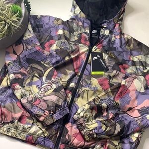 Nike Oversized Hooded Zip Up Jacket wind runner purple floral medium new