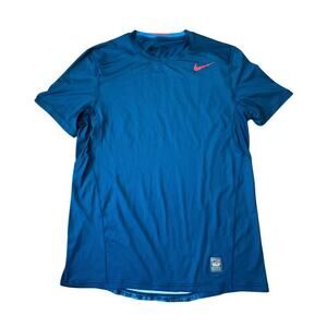 Nike PRO Combat Dri Fit Fitted short sleeve shirt, Large, Red & Blue