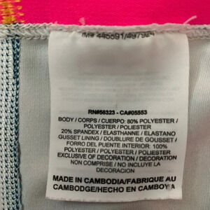 Multi-shades blues with contrast yellow/orange waist band