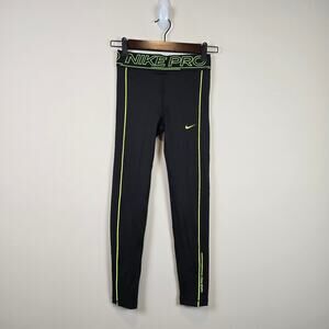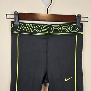 Nike PRO Dri-fit Tight Leggings Size M/10-12 Kids Black Volt FZ5613-010 Training