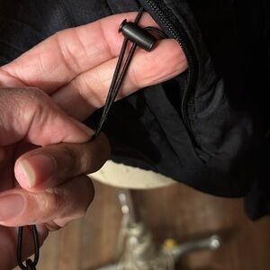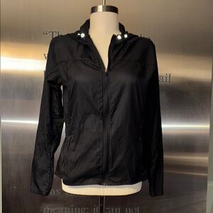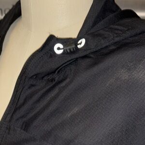 Super lightweight package jacket in E/VGUC. No visible flaws. Reflective detailing on the hood and on the back bottom of the jacket. Internal bungee is available to adjust the waist. Zipper exterior pockets. Inside pouch pockets. Thanks for checking out my closet.