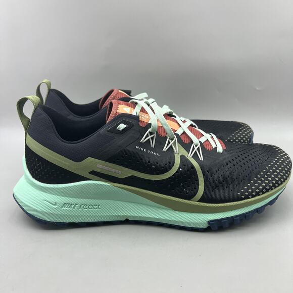 Midsole/Outsole: Nike React foam midsole for responsive cushioning, durable rubber outsole with aggressive multi-directional lugs for trail traction.
