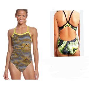 Nike Performance Epic Open Back Black Yellow Swimwear Swimsuit Size 4 /30