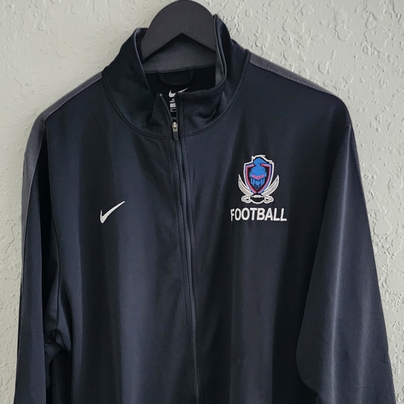 Size XL Nike Full Zip Performance Jacket measurements are taken it does have a Sports Team Logo of a Gladiator Helmet smsee pictures