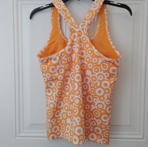 Nike Performance razorback top with built in shelf bra. Cool orange graphic pattern. EUC. Size L.