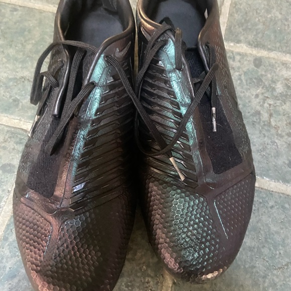Sleek Nike athletic shoes. Black with green accents. Perfect for sports and casual wear.