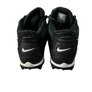 These Nike Phylon High-Top Football Cleats in men's size 10 combine style and performance. Sporting a black and white design, they feature a rubber bottom for maximum grip.
