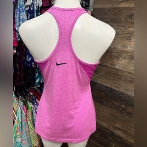 Elevate your workout wardrobe with this Nike tank top, showcasing a striking pink color and a sleek, fitted design. Crafted for both style and performance, it features a sleeveless cut and a comfortable, stretchy fabric. Perfect for athletic activities or casual outings, this top offers a modern, streamlined look with its rounded neckline.