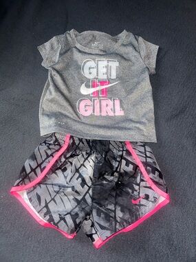 Nike Pink Dri-Fit Hoodie & Floral Leggings Set, Girls Size 2T