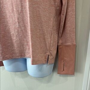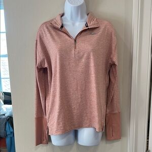 Nike quarter-zip pullover in a soft pink shade. Features a subtle logo on the chest.