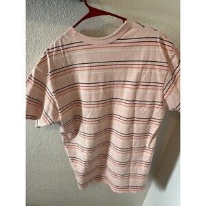 The Nike Pink Striped T-Shirt in size Medium is a stylish and comfortable option for men looking to add a pop of color to their wardrobe. Made of cotton, this shirt features a classic crew neck and short sleeves, making it easy to wear and care for with machine washable instructions. The pink stripes and Nike logo accent give it a modern and sporty look, perfect for casual everyday wear. This T-shirt is a versatile piece that can be paired with jeans or shorts for a casual and trendy outfit.