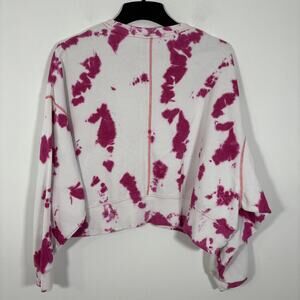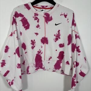 Nike Pink White Tie Dye Cropped Sweatshirt Medium Embroidered Swoosh Oversized