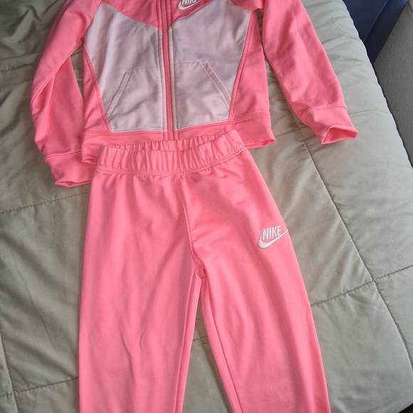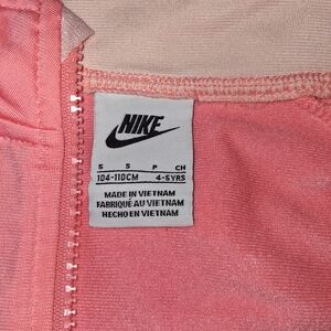 kids Nike tracksuit size 5 in excellent condition bought for granddaughter but was too small so it's never been worn. the color is a peach/coral/salmon is the best way to describe it. from smoke free and pet free house