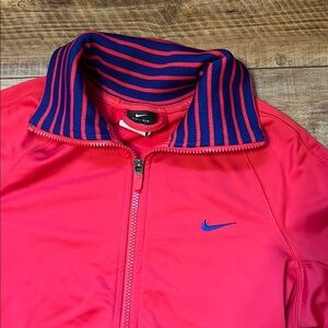 Nike Pink and Blue Bomber Jacket with Striped Collar