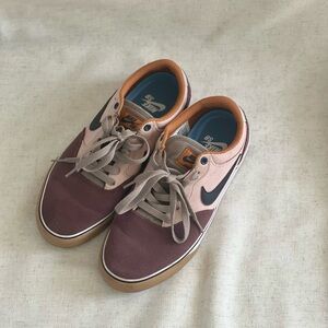 Nike athletic shoes with a pink and brown color scheme. Ideal for active lifestyles.