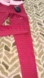 Stylish Nike activewear set featuring a pink sports bra and red leggings. Perfect for workouts.