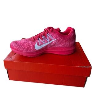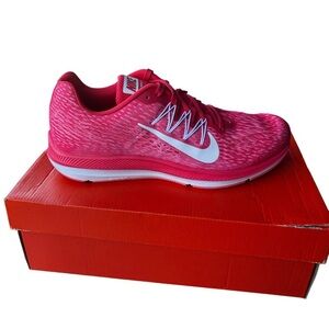 Step into style and performance with these Nike athletic shoes, featuring a vibrant pink and white colorway. The breathable mesh upper ensures comfort during your workouts, while the sleek design embodies Nike's signature modern aesthetic. Perfect for running or any athletic activity, these shoes offer both functionality and flair.