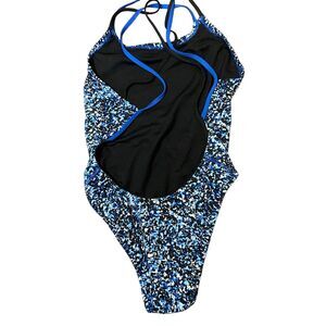 Nike Pixel Party One Piece Swimsuit Cut Out Tank SpiderBack Blue Size 28 US 2
