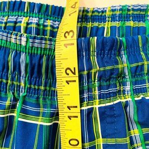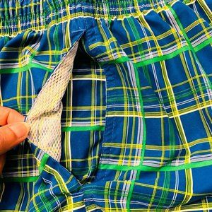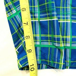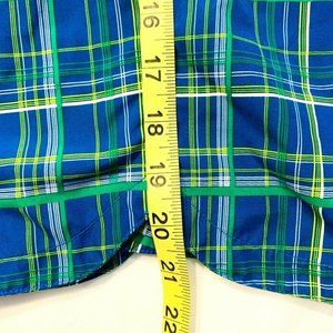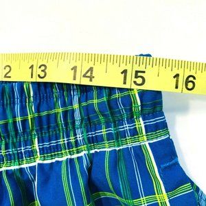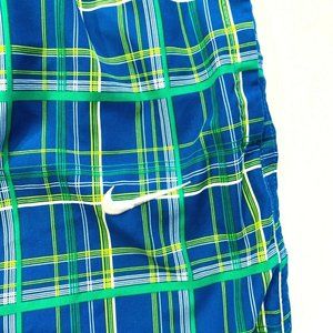 Nike Swoosh Board Shorts Swim Trunks Longer Length L Plaid Checks Blue Green EUC
