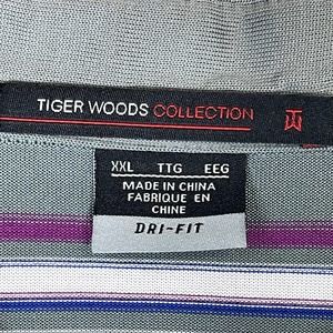 Nike Polo Shirt Adult 2XL Gray Striped Tiger Woods Collection Golf Dri Fit Mens