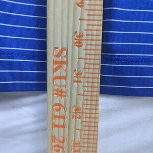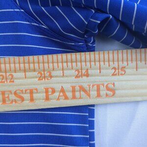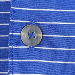 Experience comfort and style with the Nike Polo Shirt in an adult men's XL. This blue, striped Dri-Fit shirt is perfect for golf, outdoors, or college fields. Crafted from polyester, it guarantees breathability and durability.