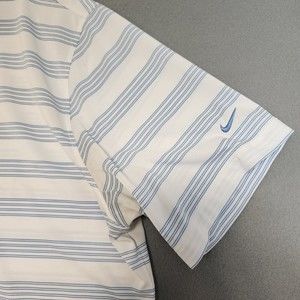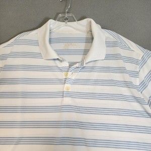 Nike Polo Shirt Mens 2XL White Striped Nike Dri-Fit Short Sleeve