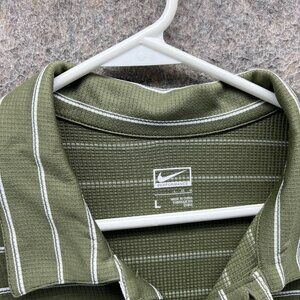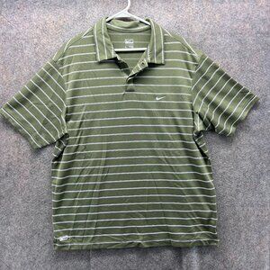 Nike Polo Shirt Mens Large Green Stripes Performance Fit Swoosh Golf Golfer