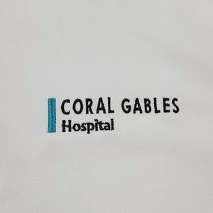 Nike Polo Shirt Mens Large White Dri-Fit Golf Swoosh Coral Gables Hospital Logo