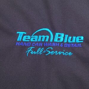 Pre-Owned in good used condition with Team Blue Car Wash embroidered on front.