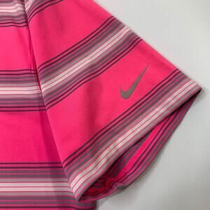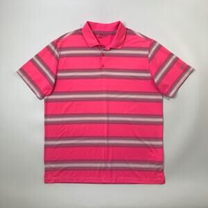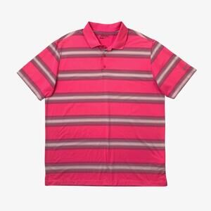 Nike Polo Shirt Mens XL Azalea Pink Grey Dri Fit Tour Performance Striped Golf