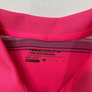 NIKE POLO SHIRT MENS XL AZALEA PINK GREY DRI FIT TOUR PERFORMANCE STRIPED GOLF